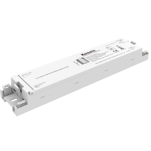 The Batten UEM 3W 2-in-1 Emergency Module is designed for Kosnic LED battens, offering selectable operation in standard or self-test modes. With simple push-switch programming, a long-life LiFePO4 battery, and adaptive current control, it provides reliable backup performance in both maintained and non-maintained systems.